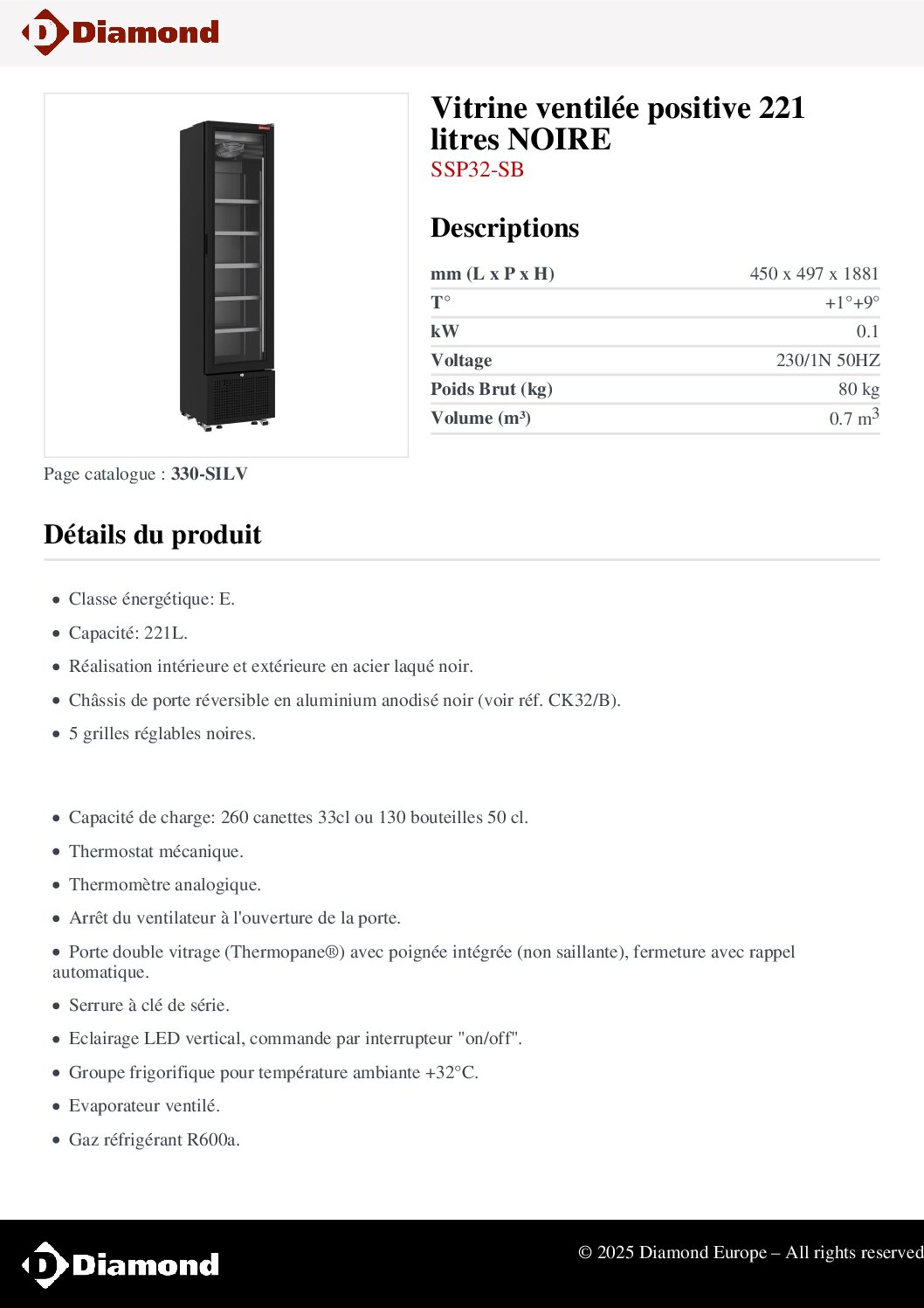 - Capacité de charge: 260 canettes 33cl ou 130 bouteilles 50 cl.