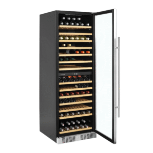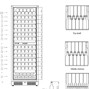 - Nombre et type de tablettes : 14 étagères à vin bois