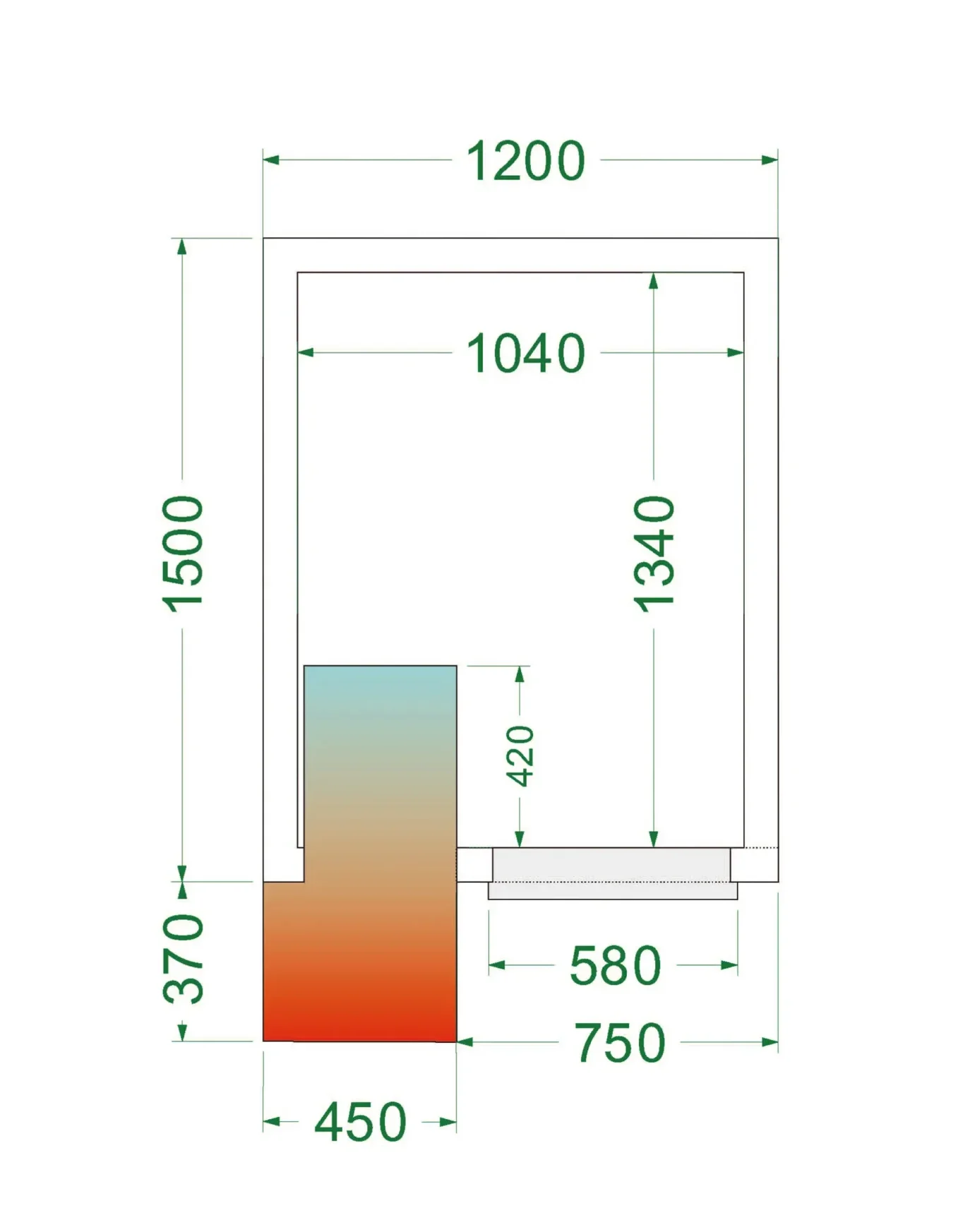 1200 x 1500 x 2200 mm