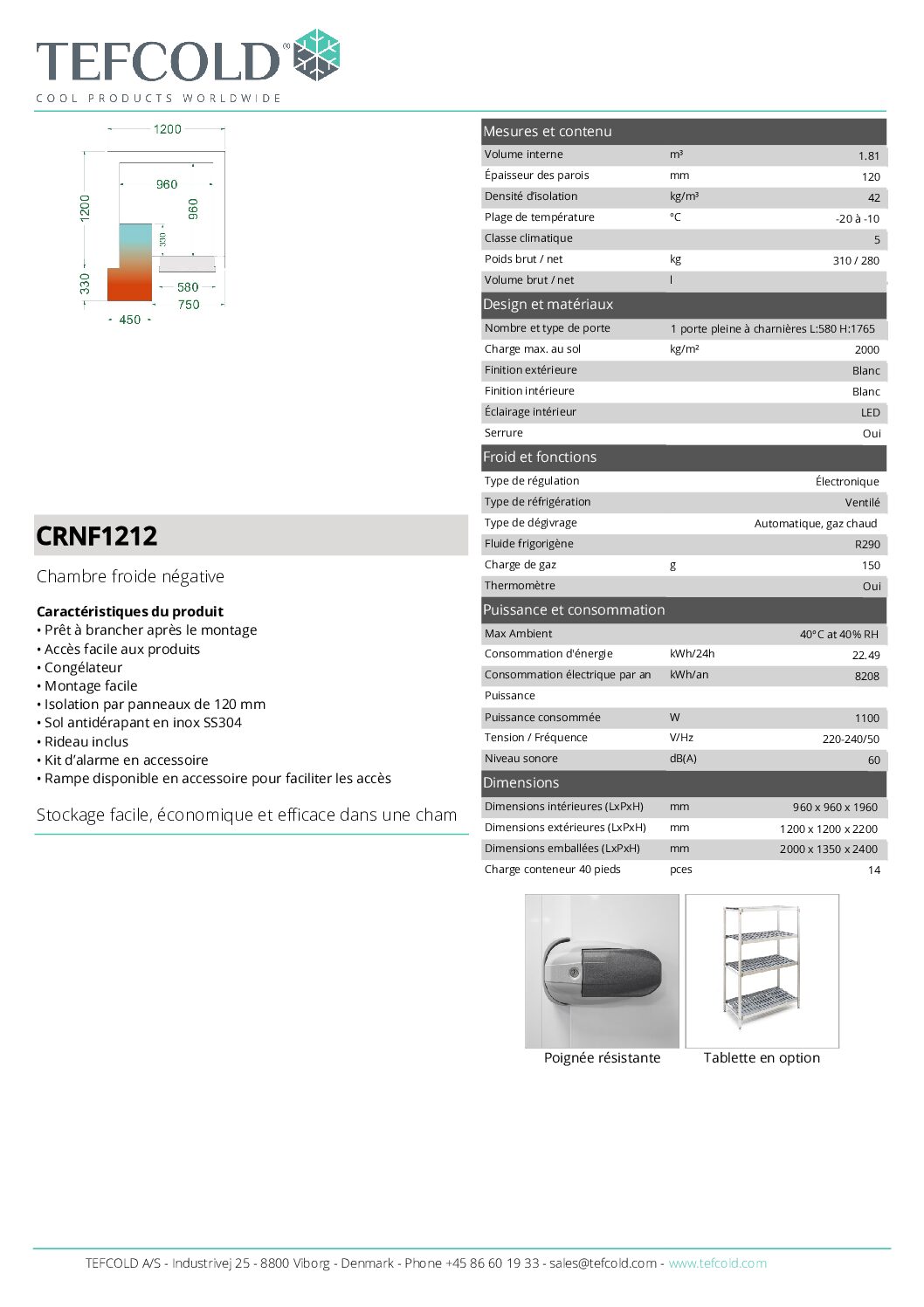 - Isolation renforcée par panneaux de 120 mm, assurant une performance thermique optimale même à très basse température.