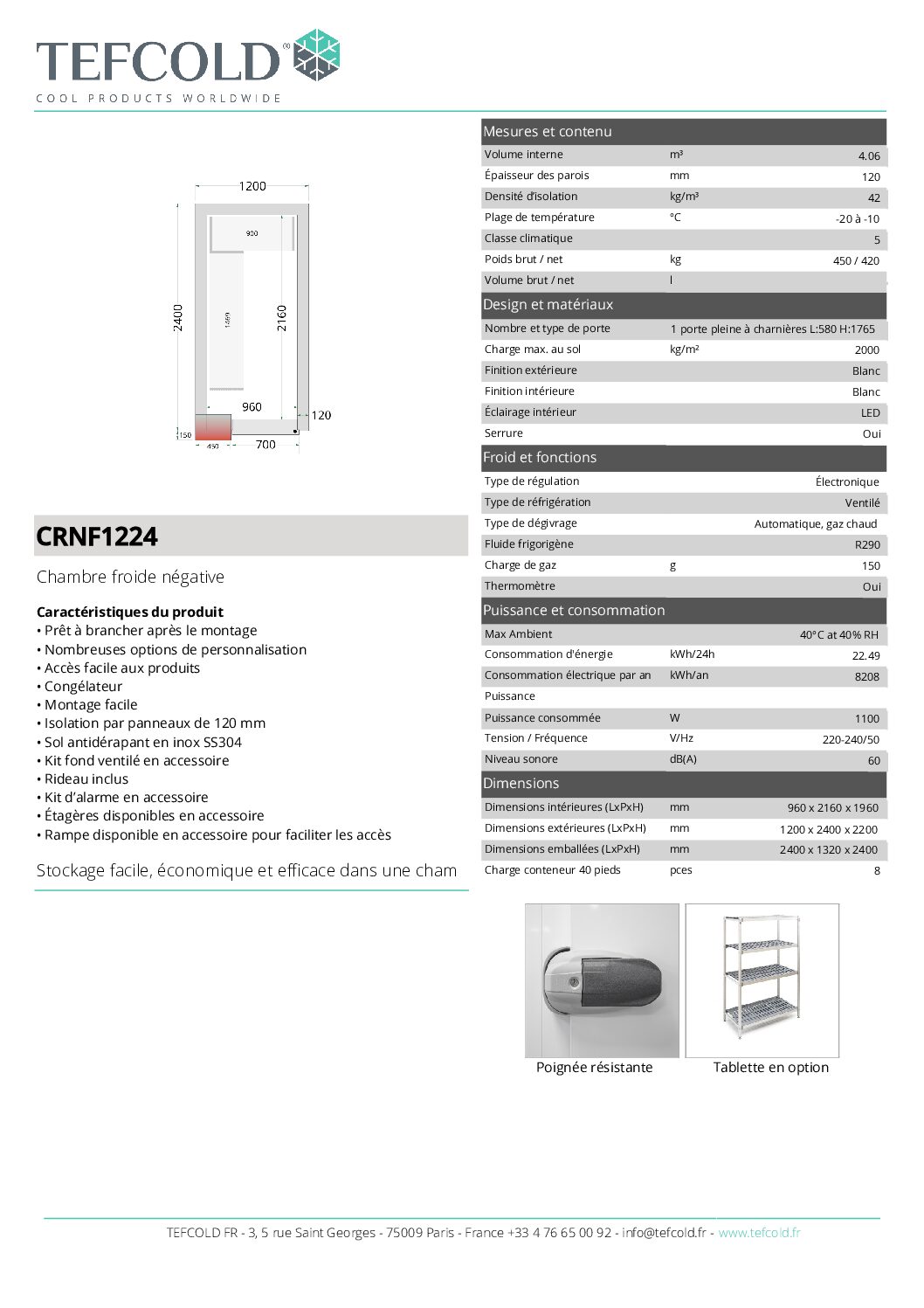 Chambre froide négative 4,06m3 marque tefcoldChambre froide négative 4,06 m3 CRNF1224