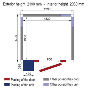 - Porte passage utile 800 xh 1900 mm (positionnement de la porte au choix, sur les 4 côtés).