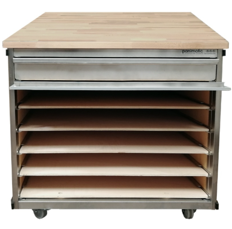 Le repose pâton de boulangerie, conçu avec précision et attention, est idéal pour les professionnels cherchant à optimiser leur espace de travail. Ce modèle est équipé de 5 planches robustes, d’un tiroir et d’un dessus en bois de hêtre, offrant une surface pratique et résistante parfaite pour vos activités quotidiennes.