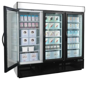 • Nombre et type de porte : 3 portes vitrées chauffantes à fermeture automatique