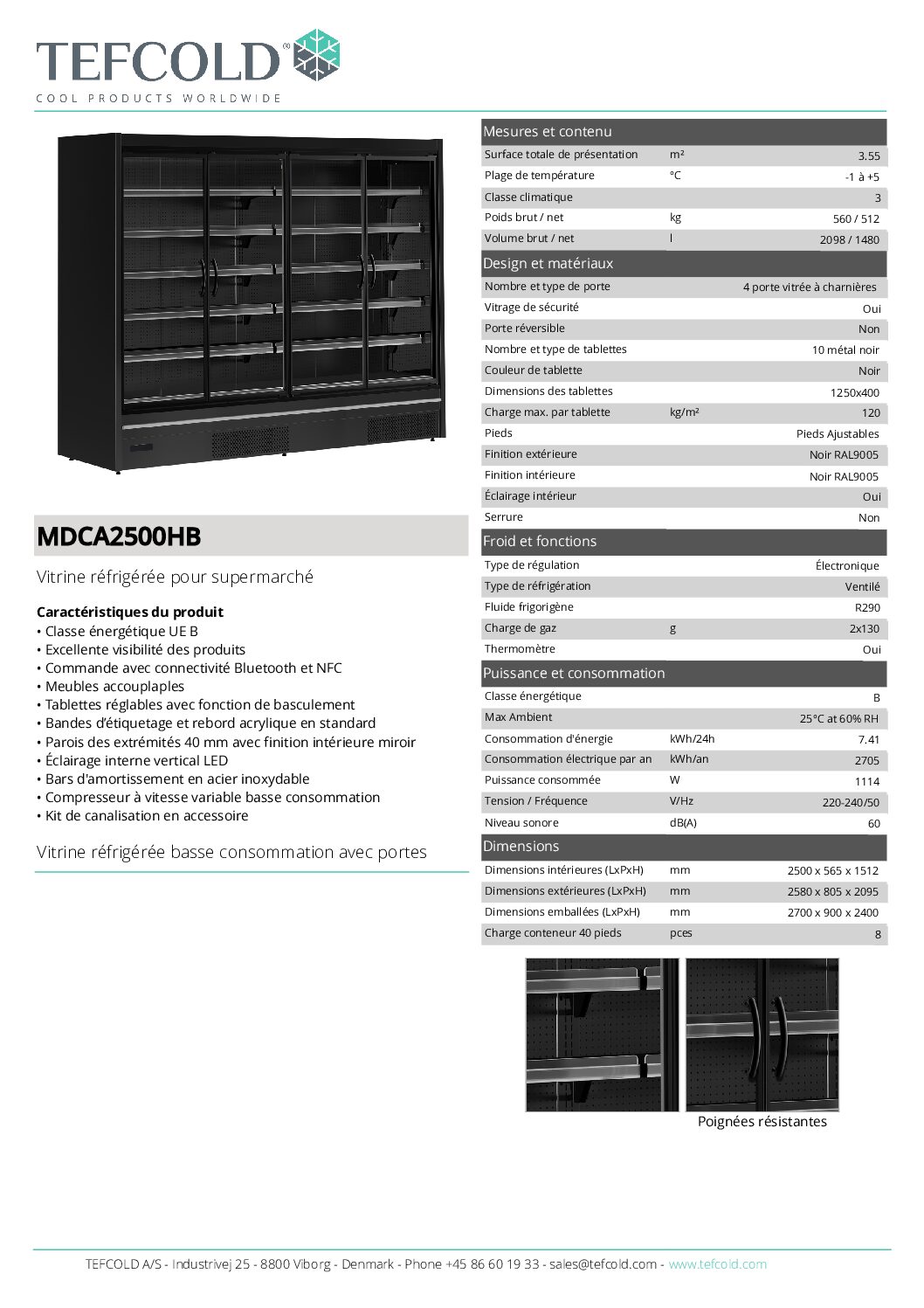 Vitrine murale réfrigérée libre service largeur 2.58m MDCA2500HBVitrine murale réfrigérée libre service largeur 2.58m MDCA2500HB